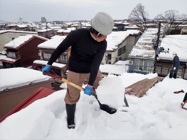 スコップをもつ前の手は順手、屋根に平行に立たない・・・プロに学ぶ除雪の基本