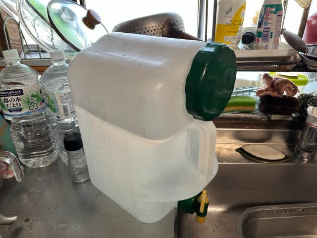 流し台に置く蛇口つきのポリタンクを、場所をとらない小型の10リットルに選んでいたのは正解だった。