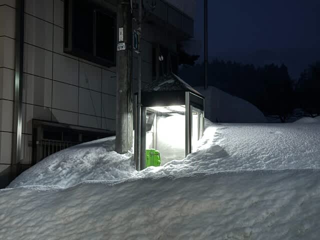 電話ボックスのガラスは雪に圧されて割れたものか?