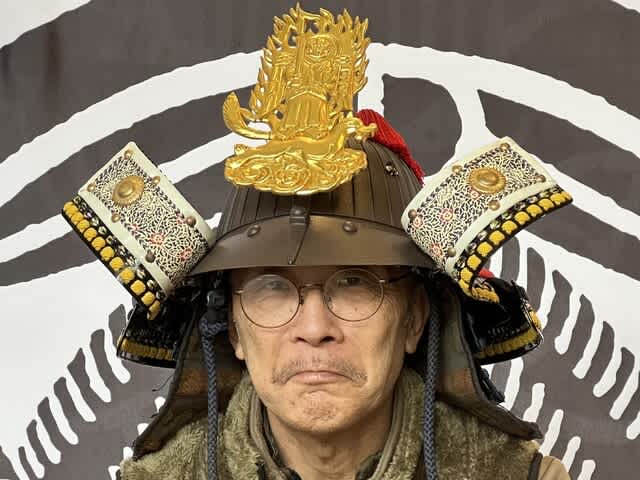 最近、NHK番組「歴史探偵」で、戦国最強の武将とも評価されている立花宗茂の兜が、4.2キロもあると紹介していて驚いたばかりだったので、重量を質問したら4~5キロあると思うとのことだったが、たぶんレプリカは2キロ強くらい。それでも重いw