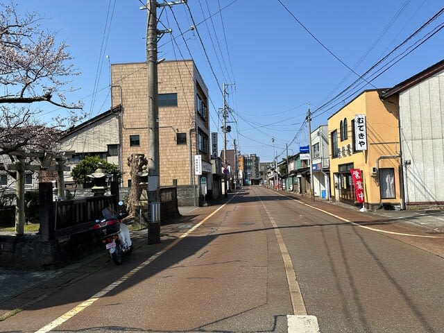 旧国道はかって加賀藩が参勤交代をした「加賀街道」だから、商店は間口がせまく奥行きのある典型的な町家つくりだ。
