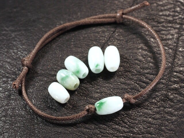 半分にカットしてナツメ玉にリメイクしたが、バレル研磨機だけで仕上げると模様が不鮮明なヒスイでも、きちんと手研磨してあげると濃淡がくっきりして上品な光沢になる。
