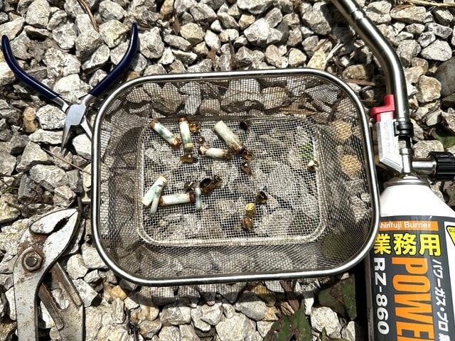 キャップをバーナーで炙って接着剤を溶かして外す。
