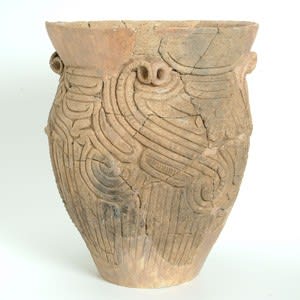「みずち文土器」も初期はヒレのような表現のないヘビっぽい文様だったそうで、ヘビといえば古今東西で水や永遠の時の流れ、男性原理の象徴とされてきた。渦巻文も然り。