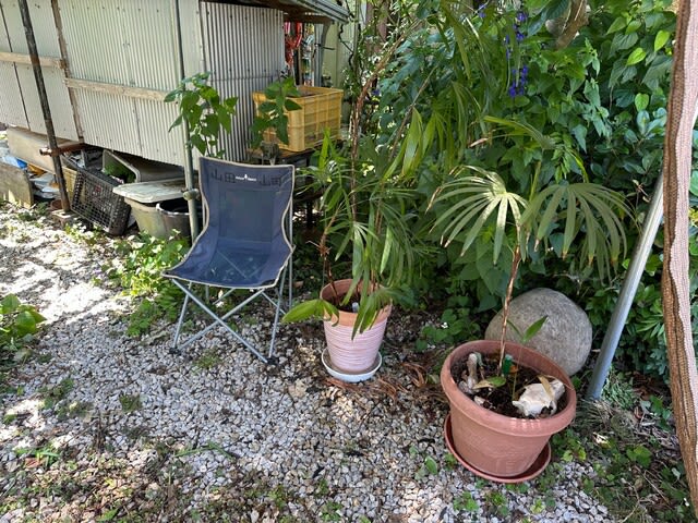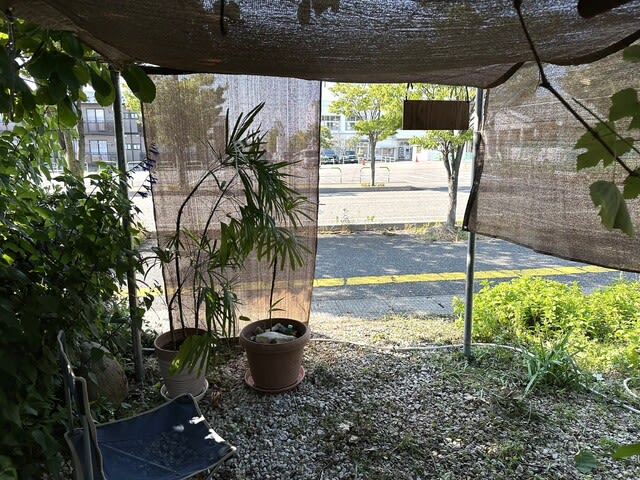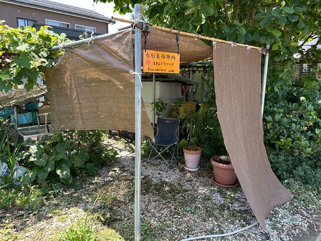 畑仕事が好きな母に外出は朝晩のみとして、畑仕事がおわったらシャワーを浴びて下着をかえろと注意しているのだが、家庭菜園に熱中症対策でイスを置いた休憩所をつくった。