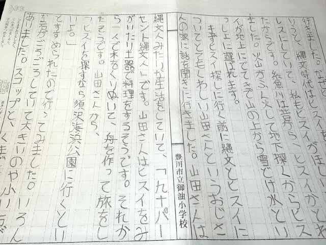作文には糸魚川の思い出と共に「山田さんは縄文人みたいな生活をしていて、『九十パーセント縄文人です』」と書かれているのだが、あと10%足りない洞察の鋭さ( ´艸`)