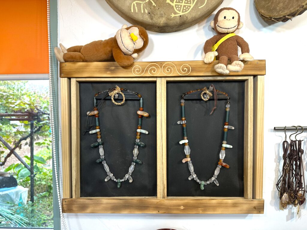 そのために工房ギャラリーには、ヌナカワ彦・ヌナカワ姫と銘打った勾玉首飾りを展示してあるのよ。