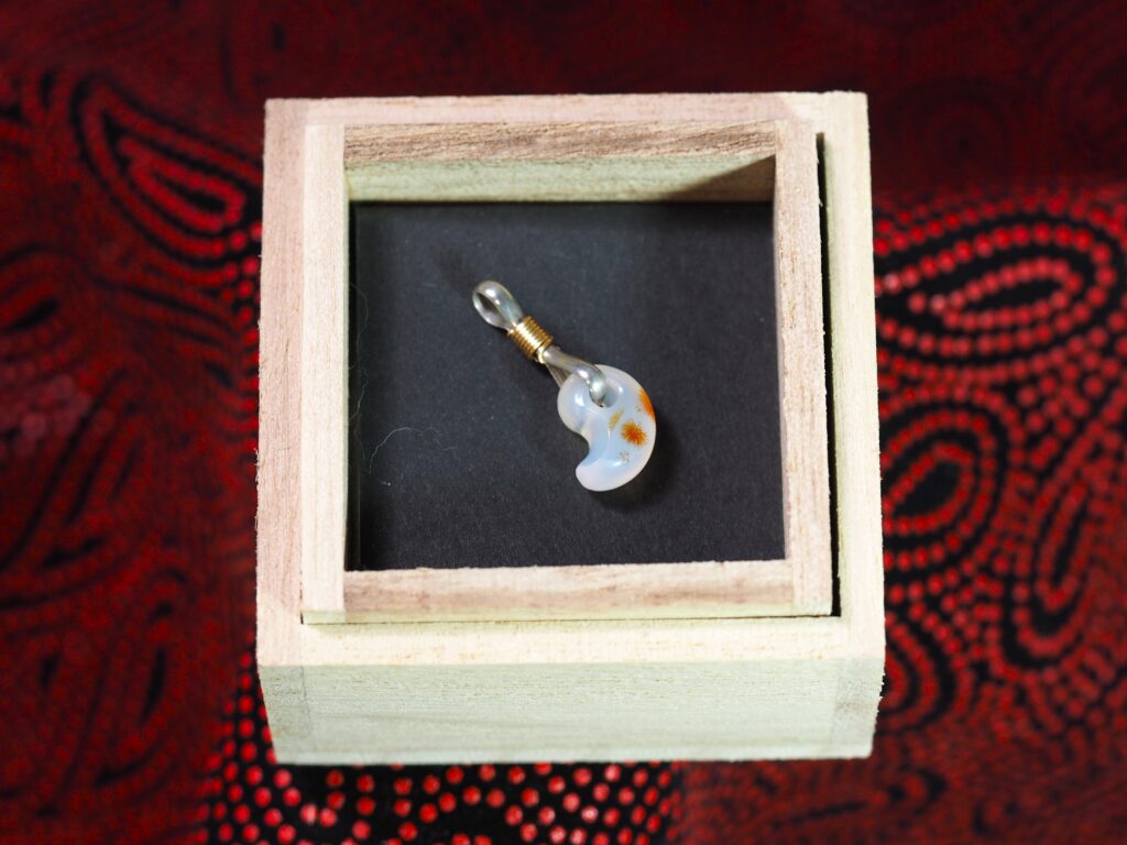 「凸凹して傷だらけの量産勾玉でも、ヒスイなら桐箱にいれれば高く売れる」と先達が言っていたので、それなら桐箱なしの中身で勝負!と意気込んでいたが、個展のプロデューサーから格式があがるからと説得されて桐箱におさめるようになったのでありマス。