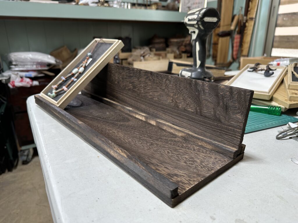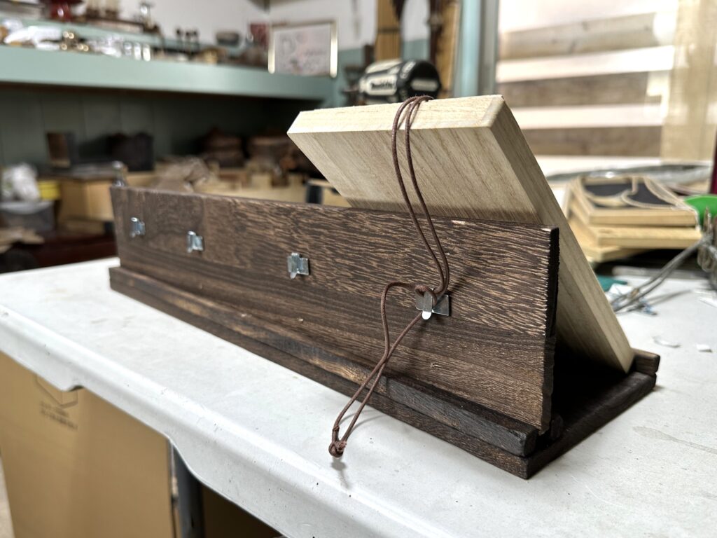 「糸魚川翡翠展2025」のために、桐箱入りのペンダントのスタンドも自作。