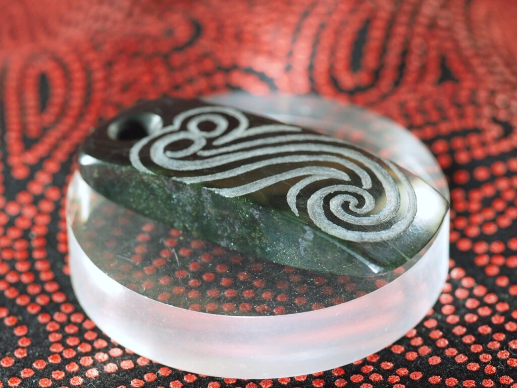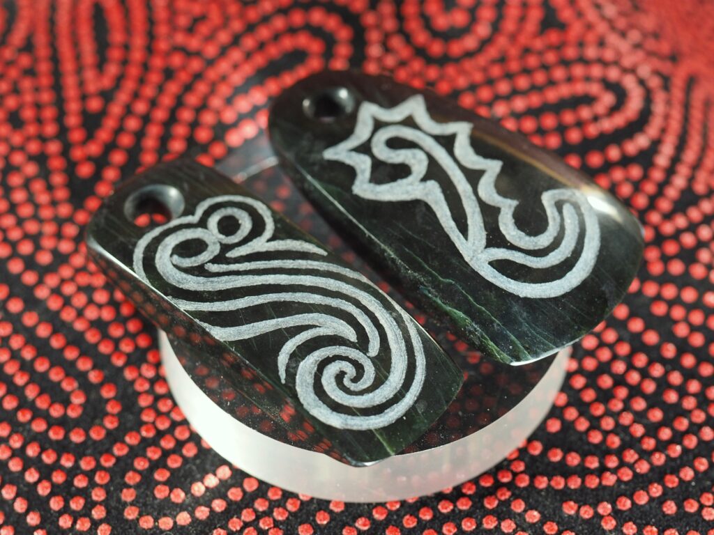 トリらしく縄文テイストに花を添え、安価な縄文アクセサリーが欲しい人のために、蛇紋岩ペンダントも用意した。