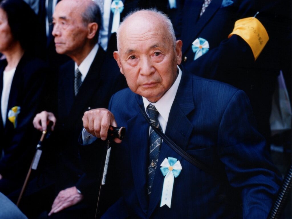 われわれ21世紀の日本人を見据えているかのような老人は、慰霊祭に参列する最晩年の角田和男元中尉。