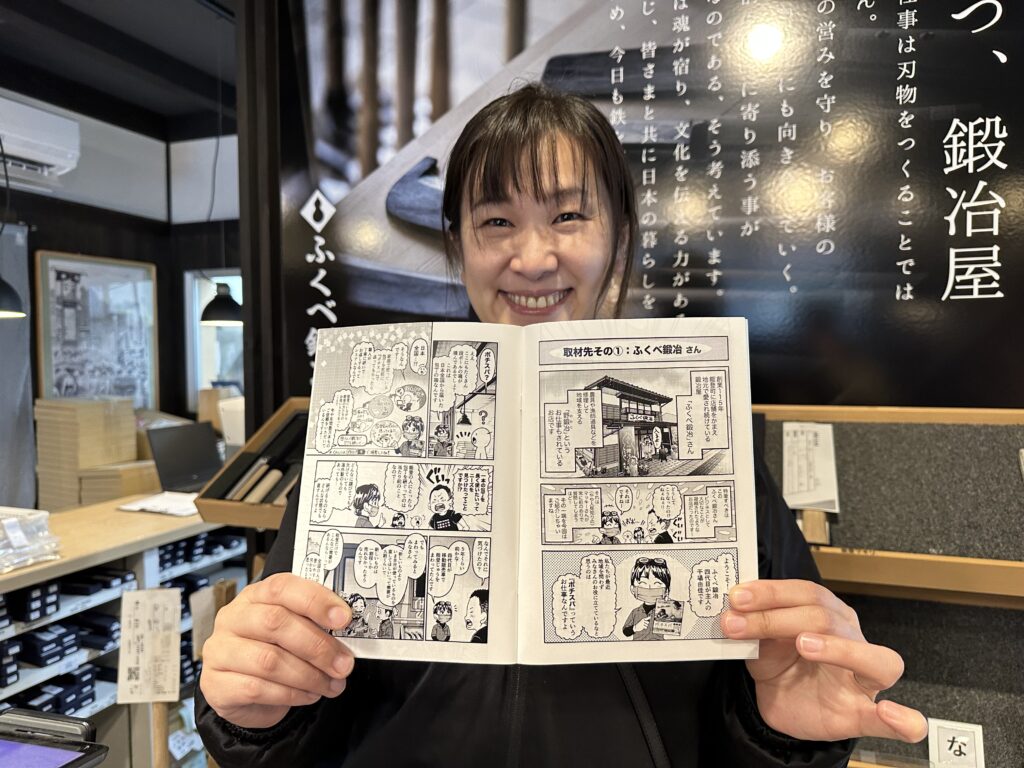 漫画をわたした皆さんは、漫画キャラに描かれた自分をみて「こんなの初めて!ちゃんと個性をつかんでる!かわいい!」「うわぁ、美人に描いてある!」「こんなに若くないですw」と、ためつがめつ見ながら満面の笑み。
