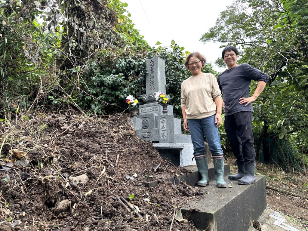 基礎工事をし直したお墓が地滑りを食い止め、自宅は無事だった。