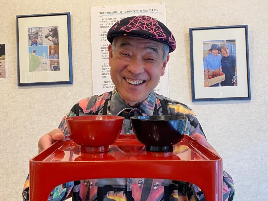 輪島の漁師さん一家の漆器を担当してくれたのが、毎年、都内で個展を主催してくれているプロデューサーの天川彩さん。仕事を二週間ストップして「輪島漆器義援金プロジェクト」に専念してくれて、大量にあった漆器を完売してくれた。