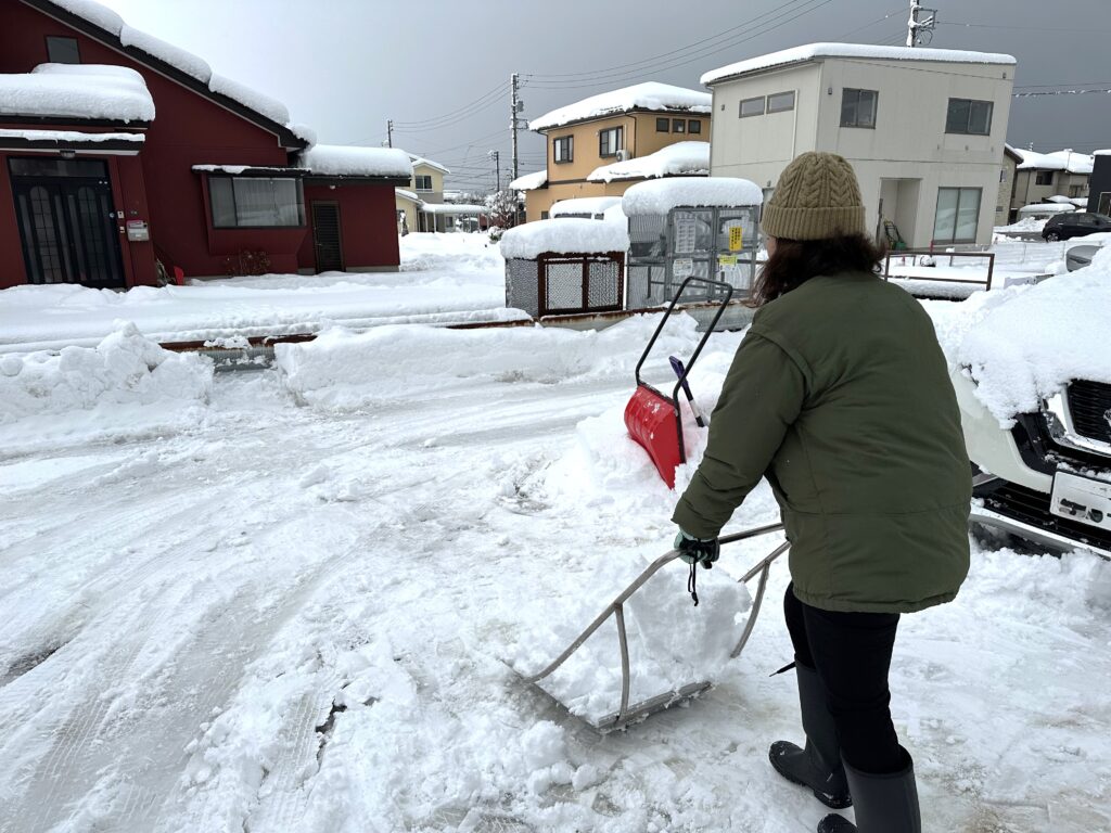 金属製スノーダンプは重いからとプラスチック製をつかう人が多いが、そもそもスノーダンプは雪の上を滑らせてつかう道具だし、重さは軽い力で固い雪に突き差せる利点でもある。