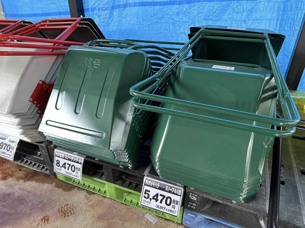 この二つに比べたらABS樹脂製の「ママさんダンプ」は滑りが悪く、腕力に頼るので腰に来て効率は悪いとのこと。軽いのがいいならポリカーボネート製だと高いけど滑りはいいと思う。