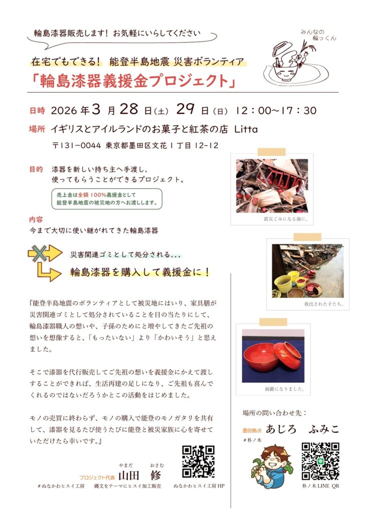 輪島漆器義援金プロジェクトin墨田区のご案内・・・能登半島地震ボランティア