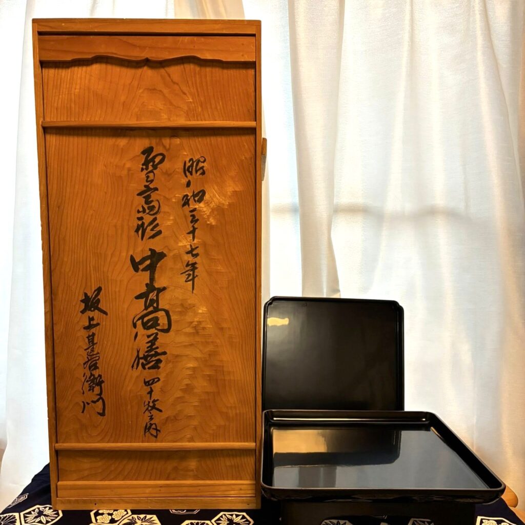 人気のあるお盆は売切れてしまったけど、ひくい脚つきの「二の膳」は在庫があり、お盆としてつかったり、お供えや花台にもなります。
